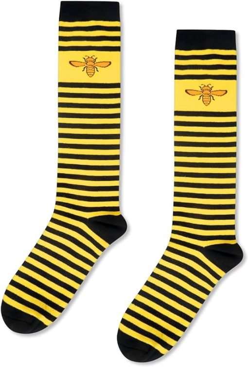 KNEE Honey bee SOCKS: Add a pop of variety to your closet with these yellow socks including enthusiastic prints of honey bees. Ideal for any honey bee sweetheart hoping to say something with their socks.
